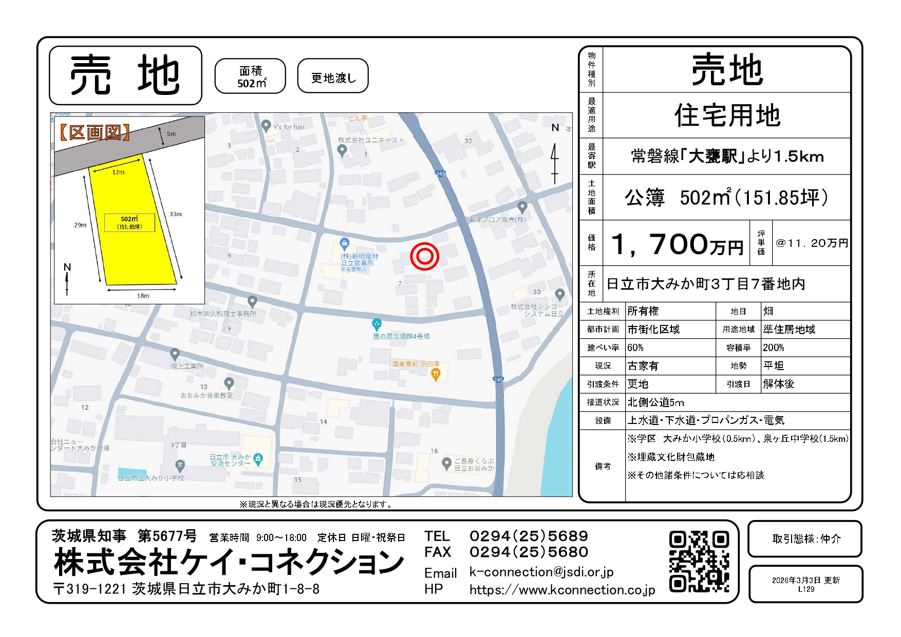 【売地】日立市大みか町3丁目7番地内